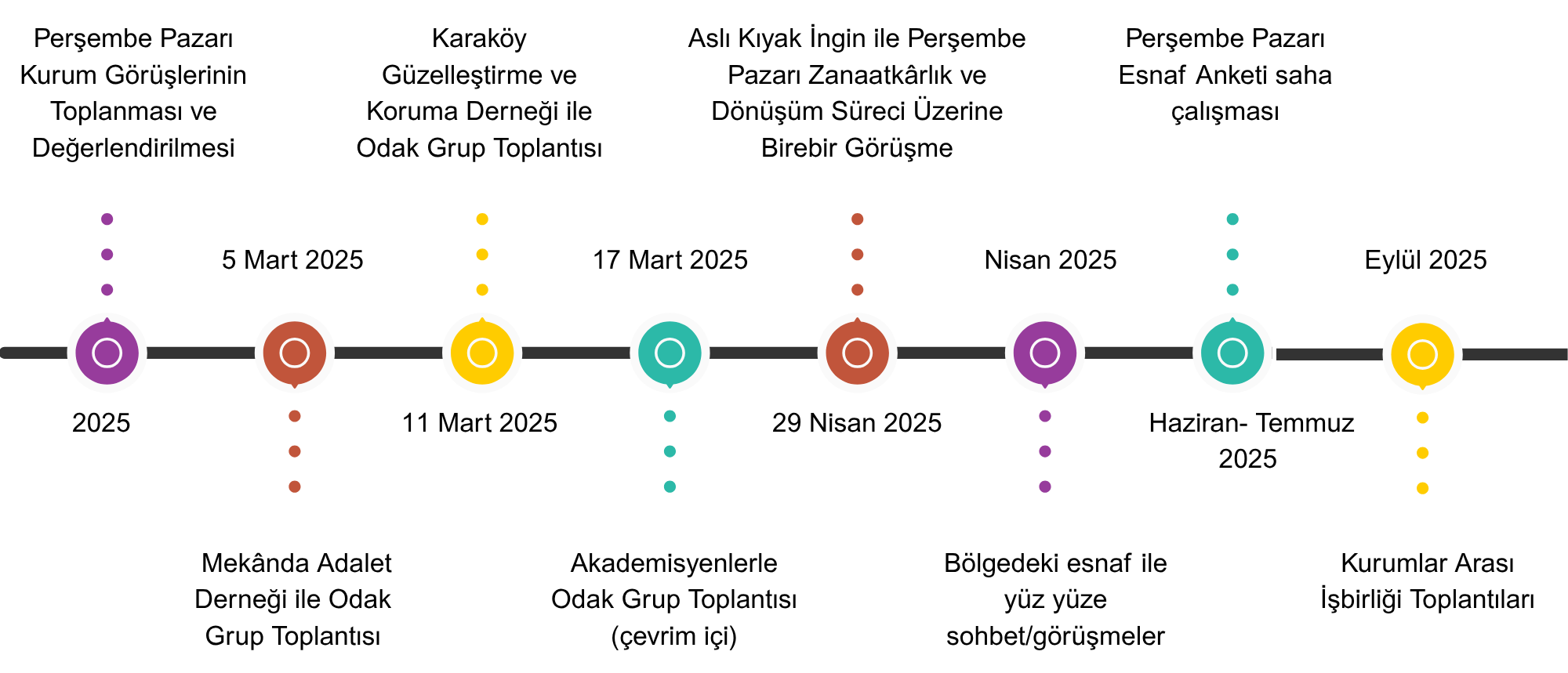 Perşembe Pazarı için yürütülen planlama çalışmaları, bölgedeki esnaf, mahalle muhtarlığı, sivil toplum kuruluşları, ziyaretçiler ve ilgili kurumların katılımıyla devam etmektedir. “Katılımcı planlama yaklaşımı” esas alınarak yürütülen süreçte, alanın özgün kimliği, güncel ihtiyaçları ve karşı karşıya olduğu dönüşüm baskıları birlikte değerlendirilmektedir. Bu kapsamda bilgilendirme ve farkındalık toplantıları düzenlenmekte, esnaf ve yerel paydaşlarla yüz yüze saha görüşmeleri gerçekleştirilmektedir. Anketler ve çevrimiçi platformlar aracılığıyla görüş, öneri ve talepler toplanmakta; elde edilen bilgiler, devam eden plan kararlarının oluşturulması ve paylaşılması sürecine yön vermektedir. Katılım süreci, planlama çalışmaları tamamlanana kadar aşamalı olarak sürdürülecektir.