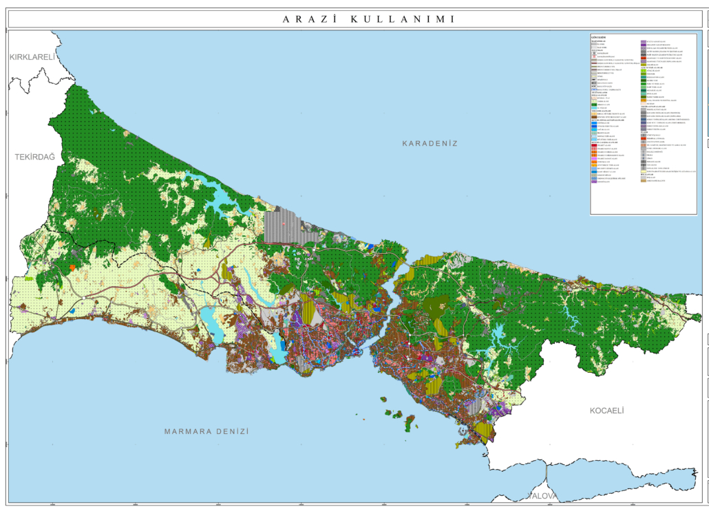 İstanbul Büyükşehir Belediyesi İmar ve Şehircilik Dairesi Başkanlığı Şehir Planlama Şube Müdürlüğü tarafından 2017 yılında hazırlanan İstanbul Geneli Arazi Kullanım Çalışmasını inceleyebilirsiniz.